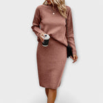 ✔️ Elegantiškas dizainas: Klasikinė megztinio ir sijono kombinacija, skleidžianti amžiną grožį.