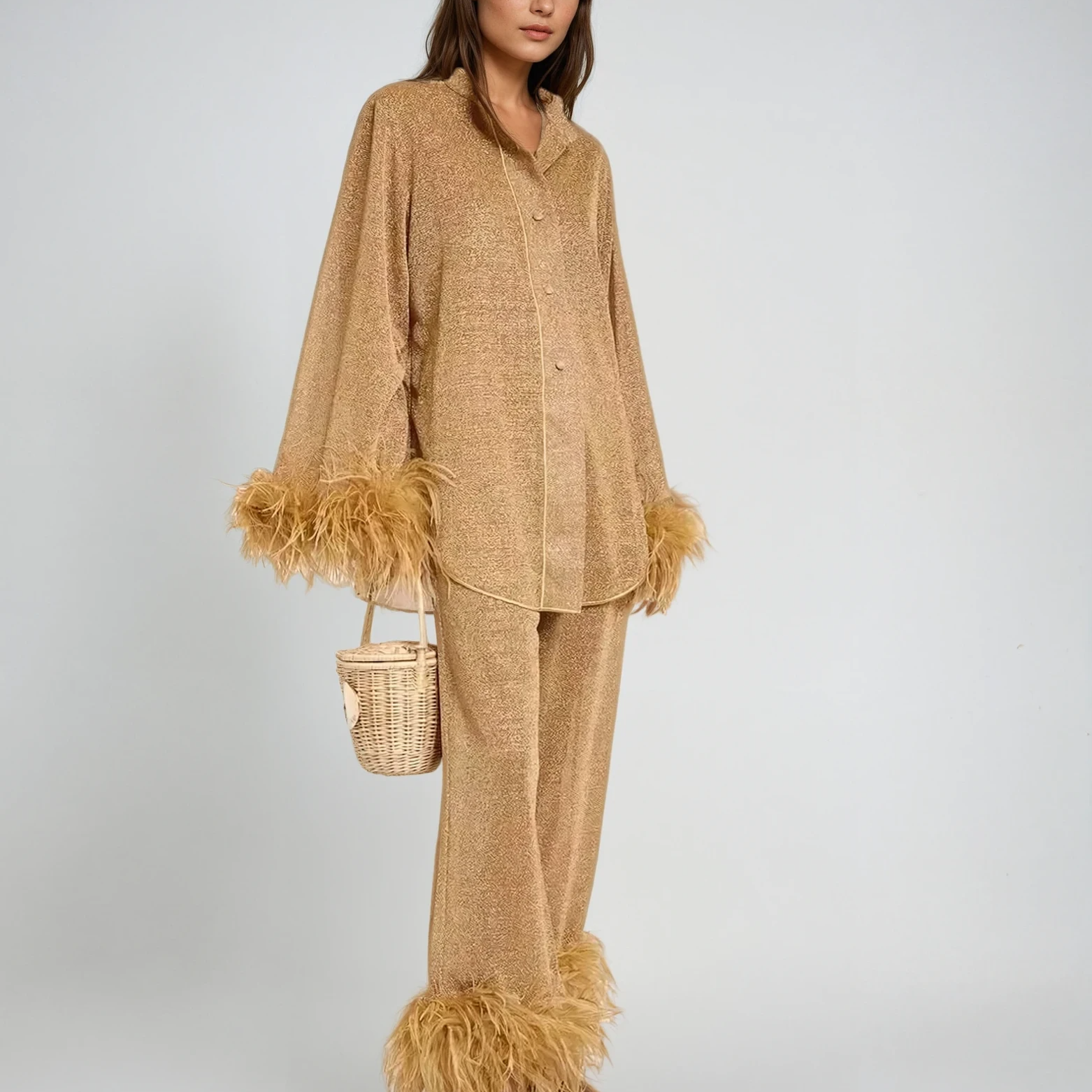 Lya - Dviejų dalių komplektas su plunksnų apykakle