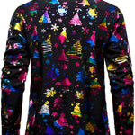 Vyriški juodi marškiniai su auksiniu kalėdiniu raštu regular fit ilgomis rankovėmis