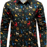 Vyriški kalėdiniai marškiniai su šventiniais elniais ilgomis rankovėmis