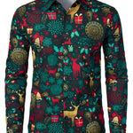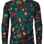 Vyriški ilgarankoviai medvilniniai kalėdiniai marškiniai su elniais